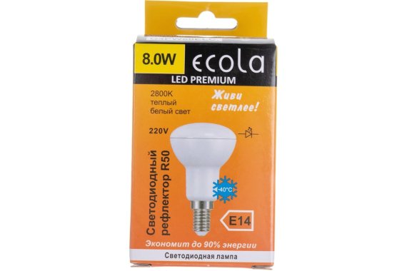 Технические характеристики Ecola Premium Reflector R50 LED 8,0W 220V E14 2800K композит 87x50 G4PW80ELC